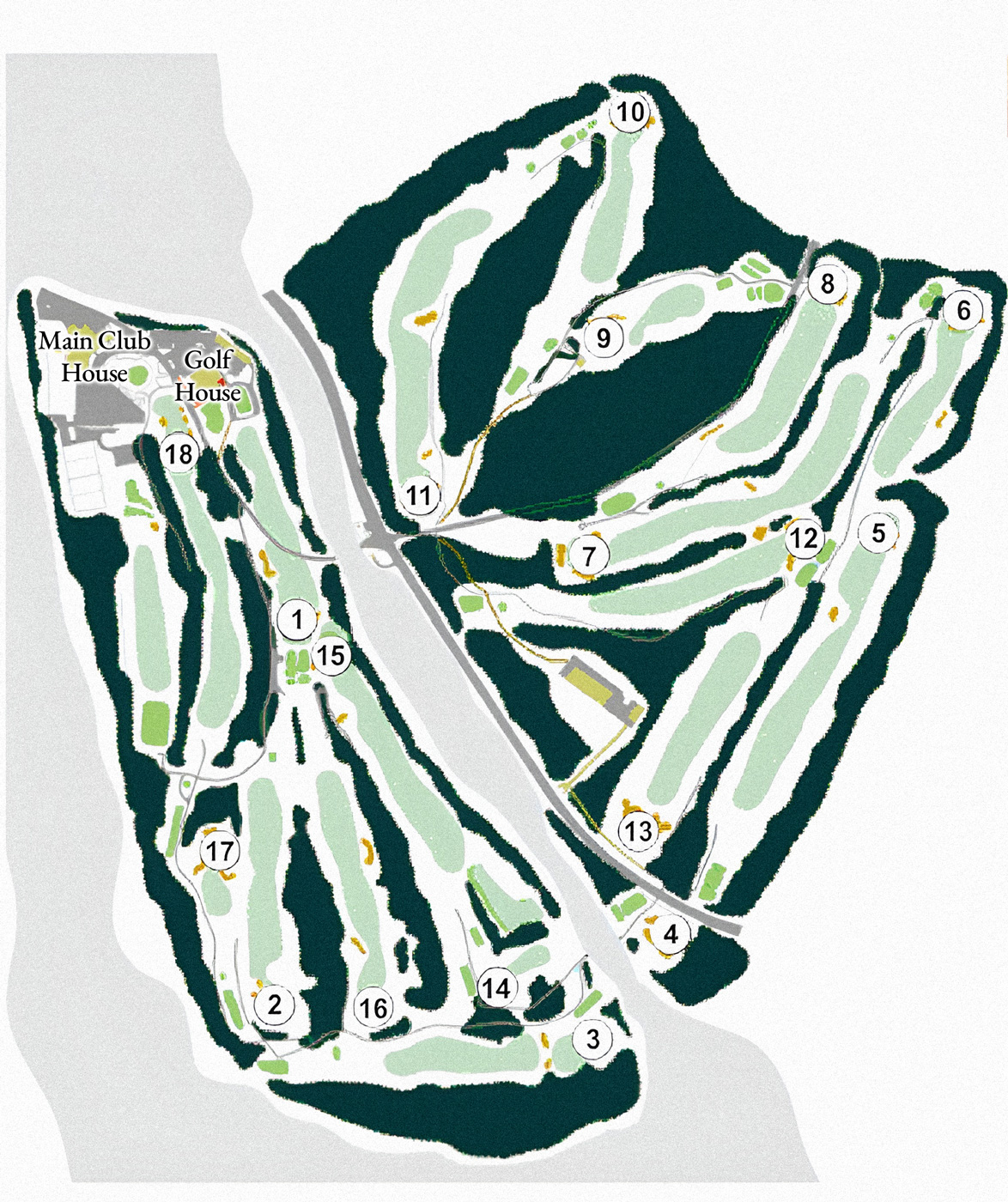 The Club’s golf course stretches across both the Island and the neighboring shoreline, offering breathtaking views of the River and the surrounding countryside.